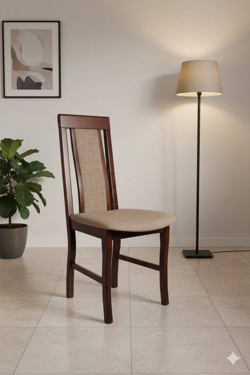 Krzesło wykonane jest z drewna bukowego, które zostało wykończone bejcą i lakierem wodnym, co gwarantuje trwałość oraz estetyczny wygląd. Solidna konstrukcja zapewnia długowieczność, a klasyczny design wpisuje się w różne style wnętrz, od tradycyjnych po nowoczesne.