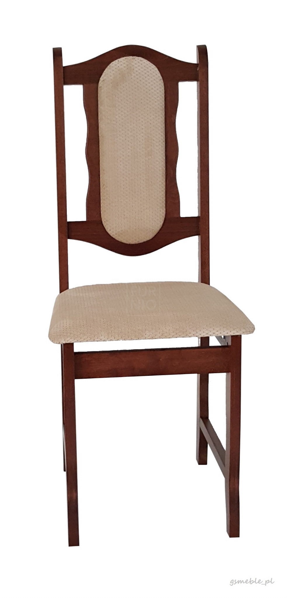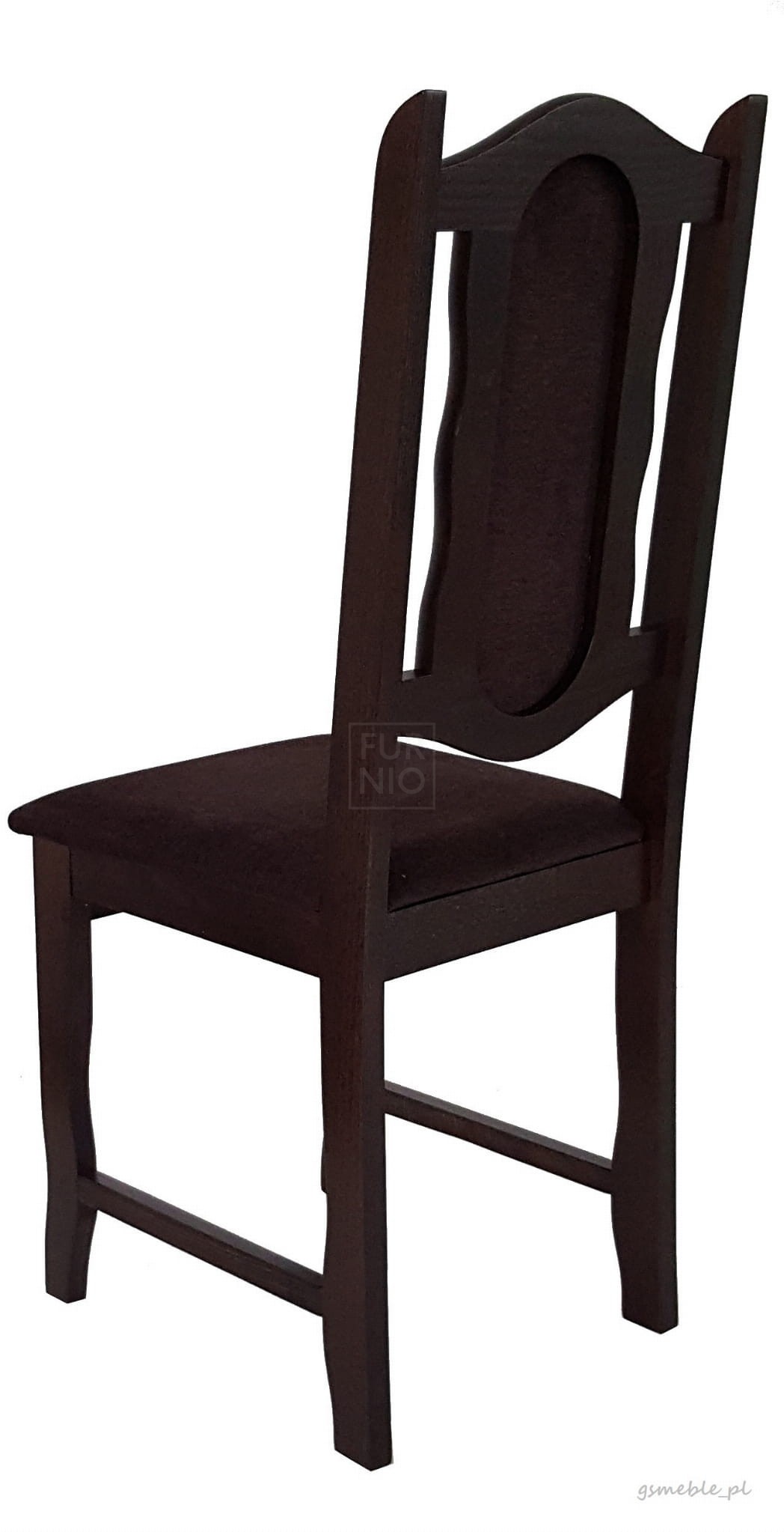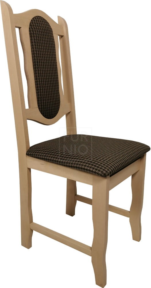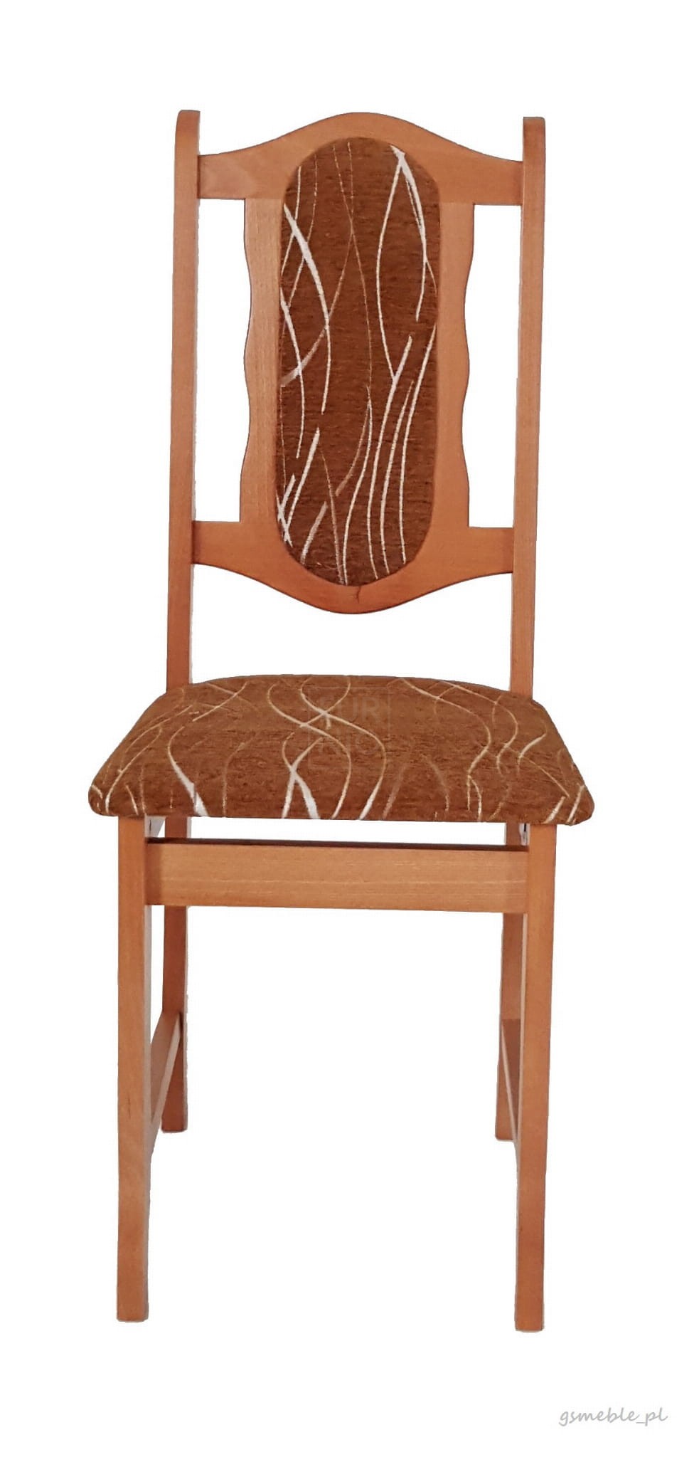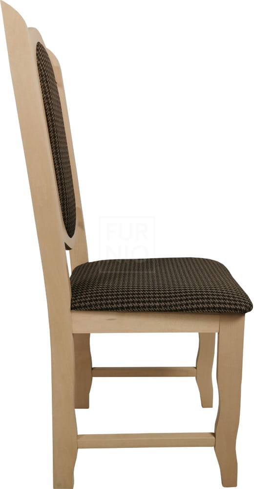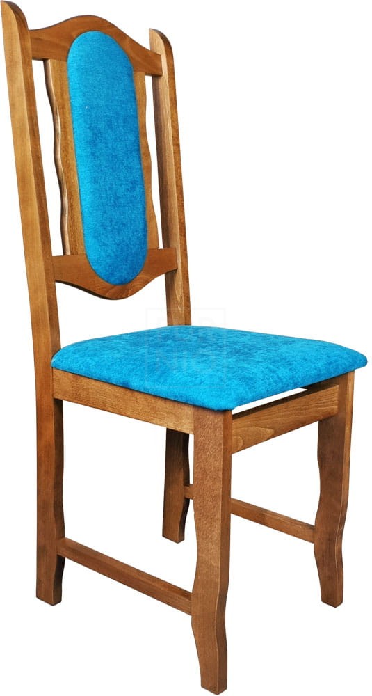 Stelaż wykonany jest z drewna bukowego, wykończonego bejcą i lakierem wodnym, co zapewnia trwałość oraz estetyczny wygląd. Wąskie, tapicerowane oparcie wyłożone pianką dodaje wygody i stylu.