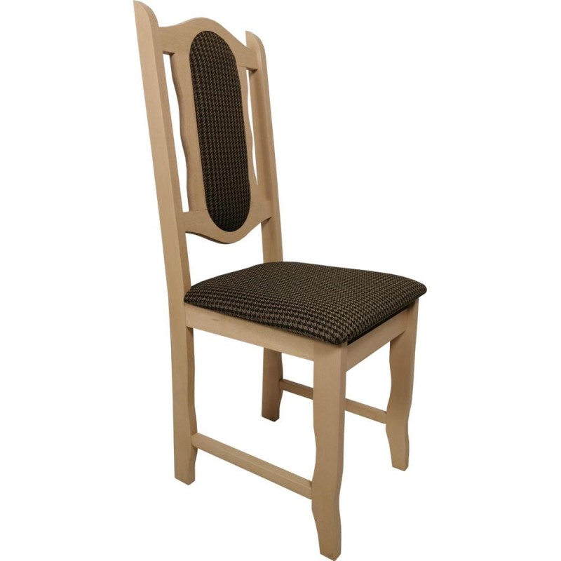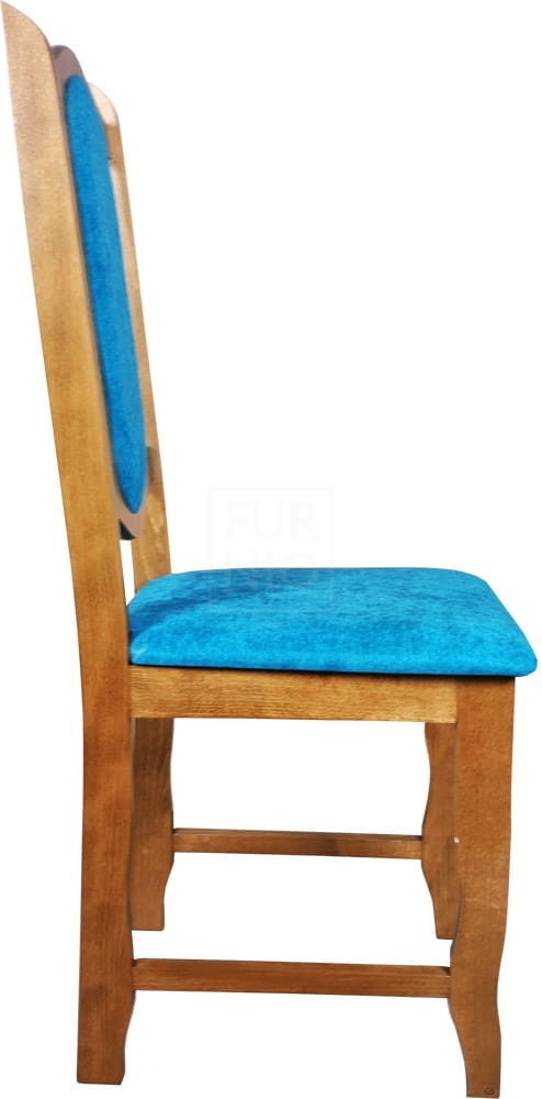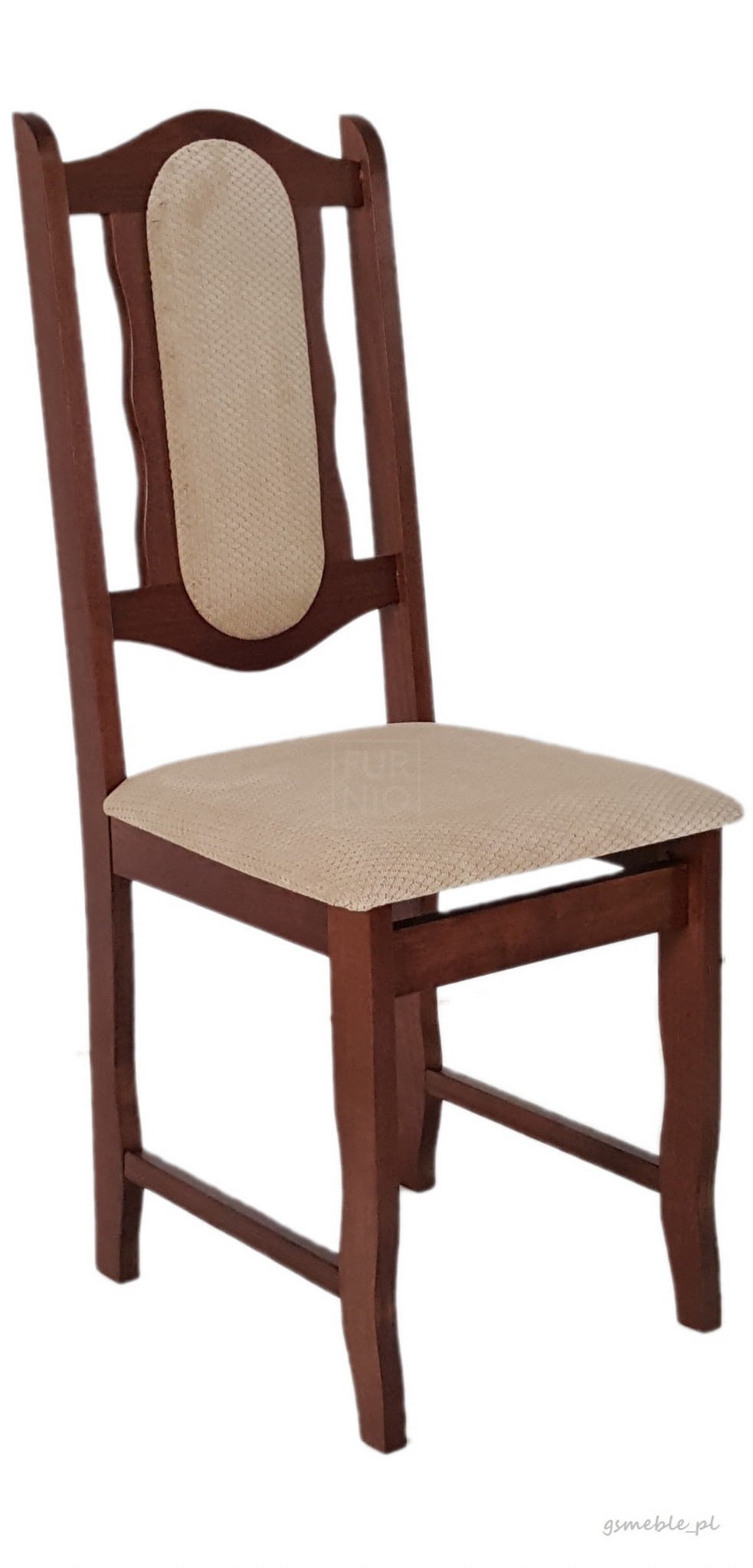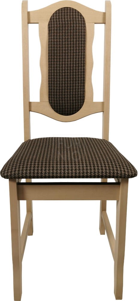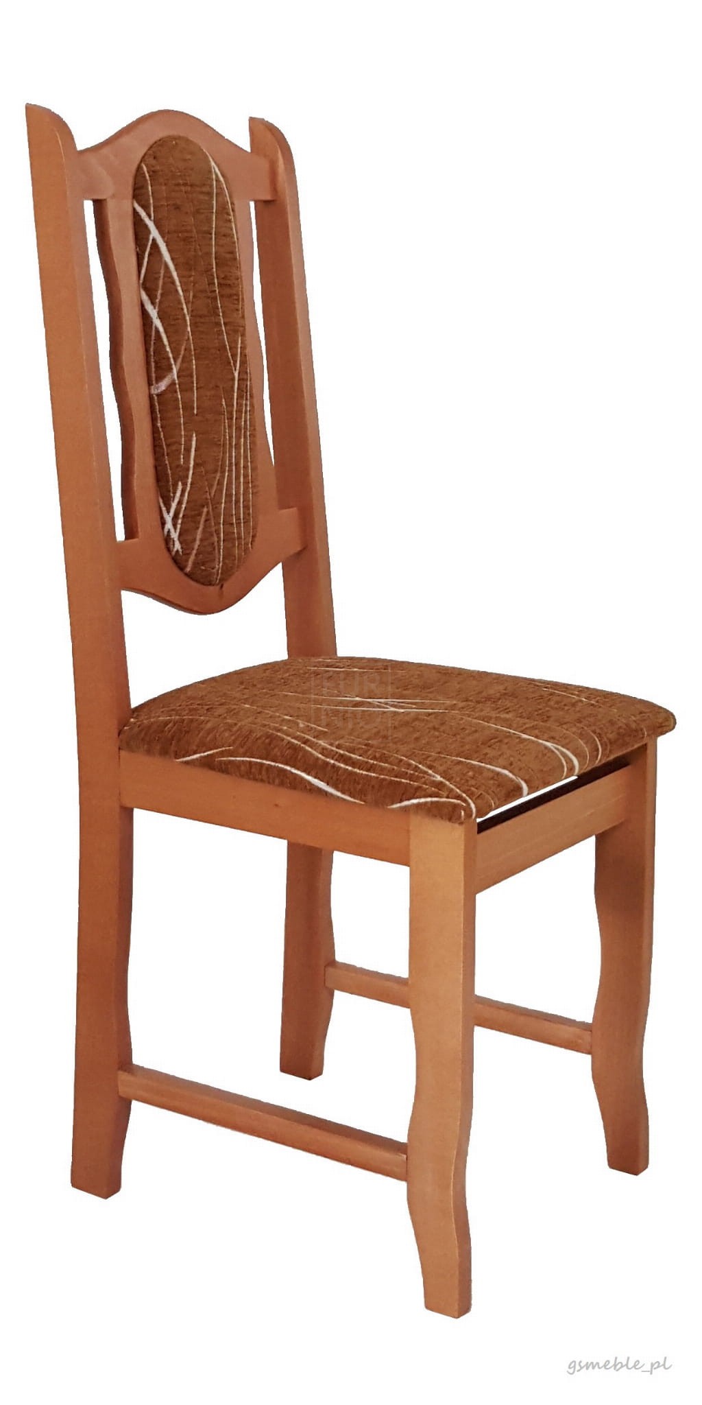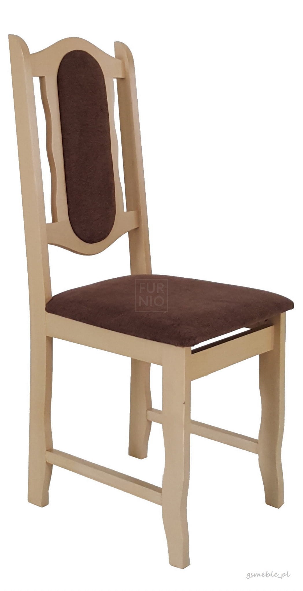 Stelaż wykonany jest z drewna bukowego, wykończonego bejcą i lakierem wodnym, co zapewnia trwałość oraz estetyczny wygląd. Wąskie, tapicerowane oparcie wyłożone pianką dodaje wygody i stylu.